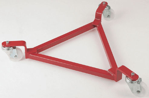 Overall Height x Diameter: 120 x 800mm. Load height 55mm, 3 x 80mm diameter nylon swivel castors. Finish: Red epoxy. Weight 8kg.