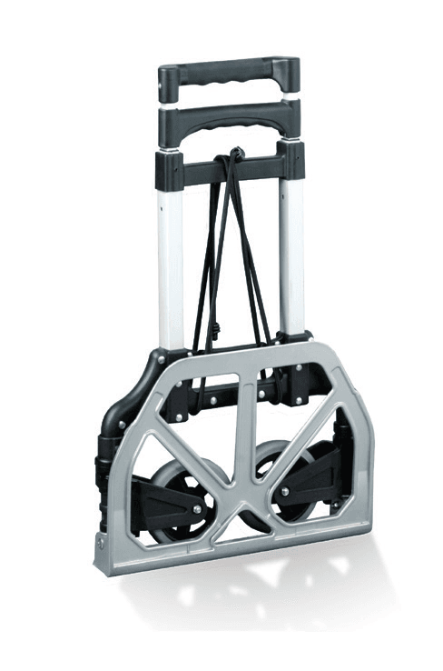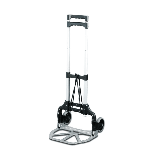 A lightweight aluminium sack truck with a large toe plate, ideal for travel, office and shop use.