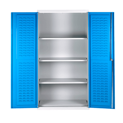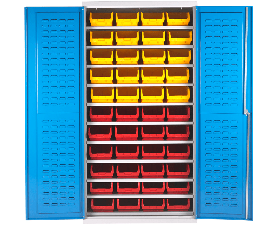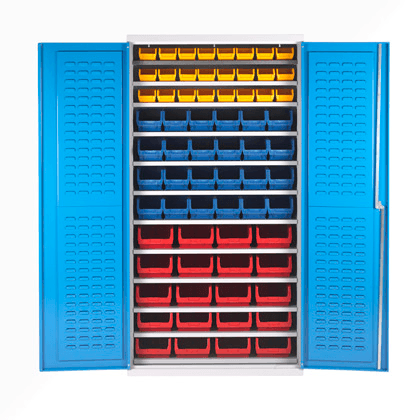 Cupboard with steel adjustable shelves (25mm pitch) to accept your own bins, or choice of units complete with bins.