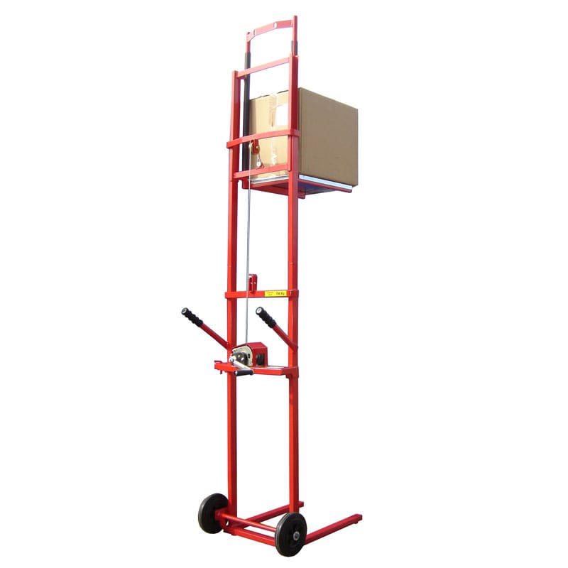 The lifter is supplied with forks only as standard and can also come with a flat platform, a V-shaped platform for holding reels and small drums and lastly with a boiler cradle. The cradle is an excellent attachment designed to assist plumbers and electricians during installation of equipment at height. The cradle is installed on top of the carriage so its lift height is increased by 620mm.