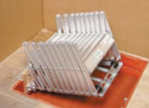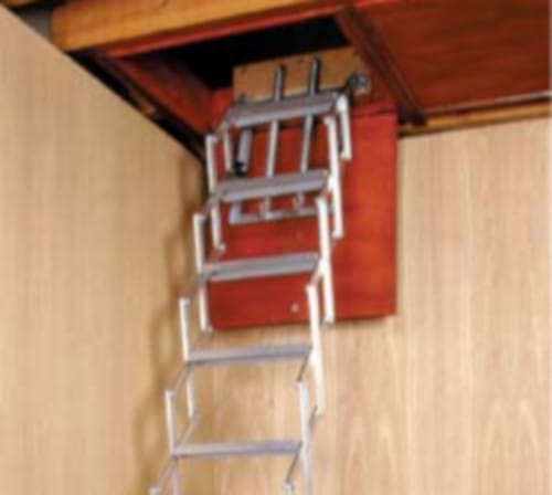 This is a concertina loft ladder which is ideal for domestic and commercial use. Manufactured from quality aluminium extrusions. Fits openings 600mm x 500mm and requires little loft clearance. Treads are 80mm deep x 335mm wide. Spring controlled operation. Can be fitted to edge of loft frame or wall. Supplied with operating pole and fittings for installation.
