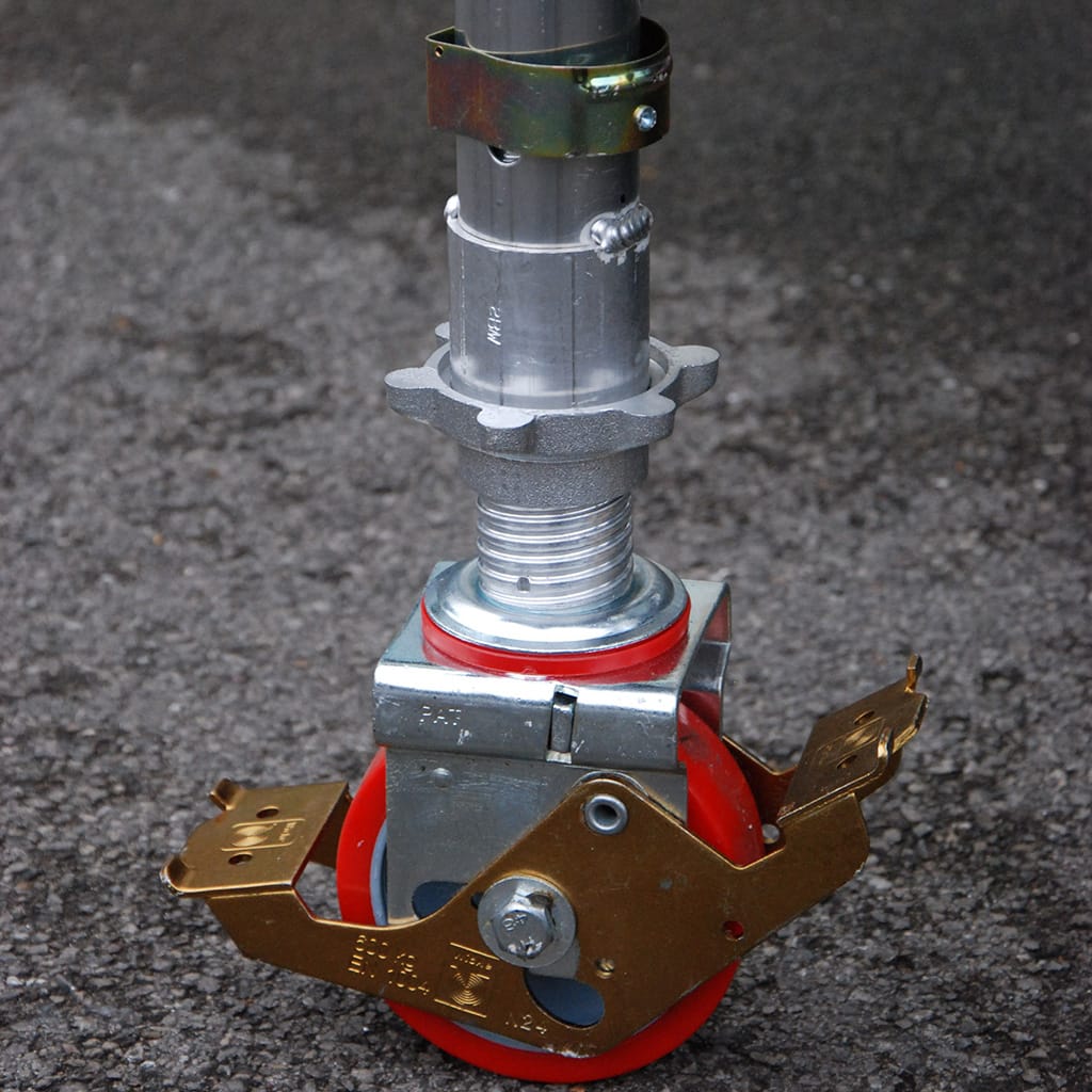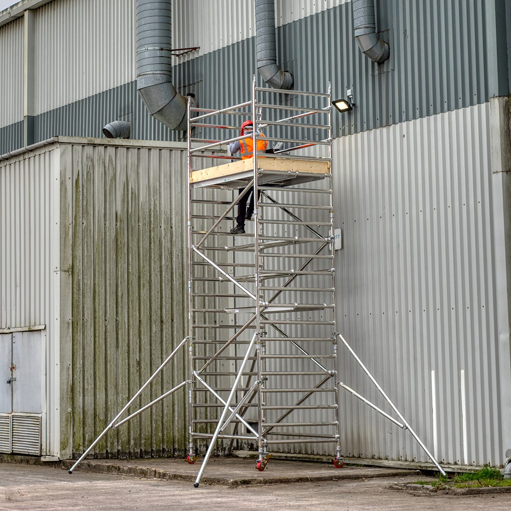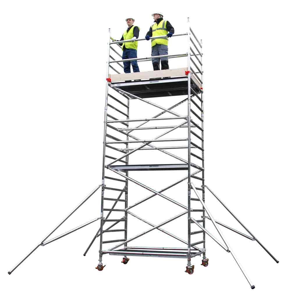 A heavy-duty scaffold-tower that withstands use in industrial environments, with the minimum number of components required to build this tower to your desired height. Top-level quality components include locking castors, threaded levelling legs, locking brace hooks, frames that are 232mm spaced apart, removing the need for separate ladder frames. Spare parts are available to replace damaged components or if you need to build additional platform heights. Manufactured in the UK, this range of scaffold towers is available here in single width in a variety of platform sizes, from 2.0m (standard), 2.5m and 3.0m lengths (please call for 2.5 or 3m prices). Double width as pictured is also available (contact us for details).