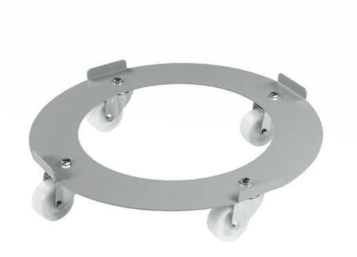 Manufactured from 3mm mild steel. 590mm internal diameter, minimum drum diameter: 520mm. Overall height: 135mm. Retention lip height: 24mm. Wheels: 4 x swivel castors fitted with 80mm nylon wheels and roller bearings.