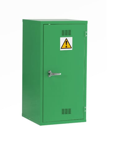 Storage cabinets for hazardous materials. Strong welded 20swg steel construction. Lever lock handles with 2 rods locking top and bottom, 2 keys. Pesticide/chemical cabinets have door vents to prevent fume build-up. Adjustable punched trays to contain spills and allow them to drain into removable sump.