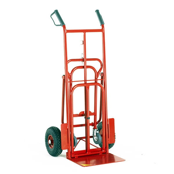 The Three-in-one (or three position) Convertible Sack Truck is ideal for variable applications. It can be used as a regular sack truck, has a large toe and even larger folding toe, for those bulky items.