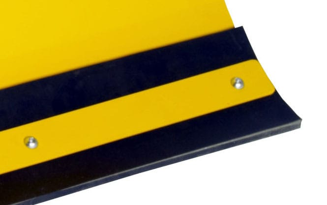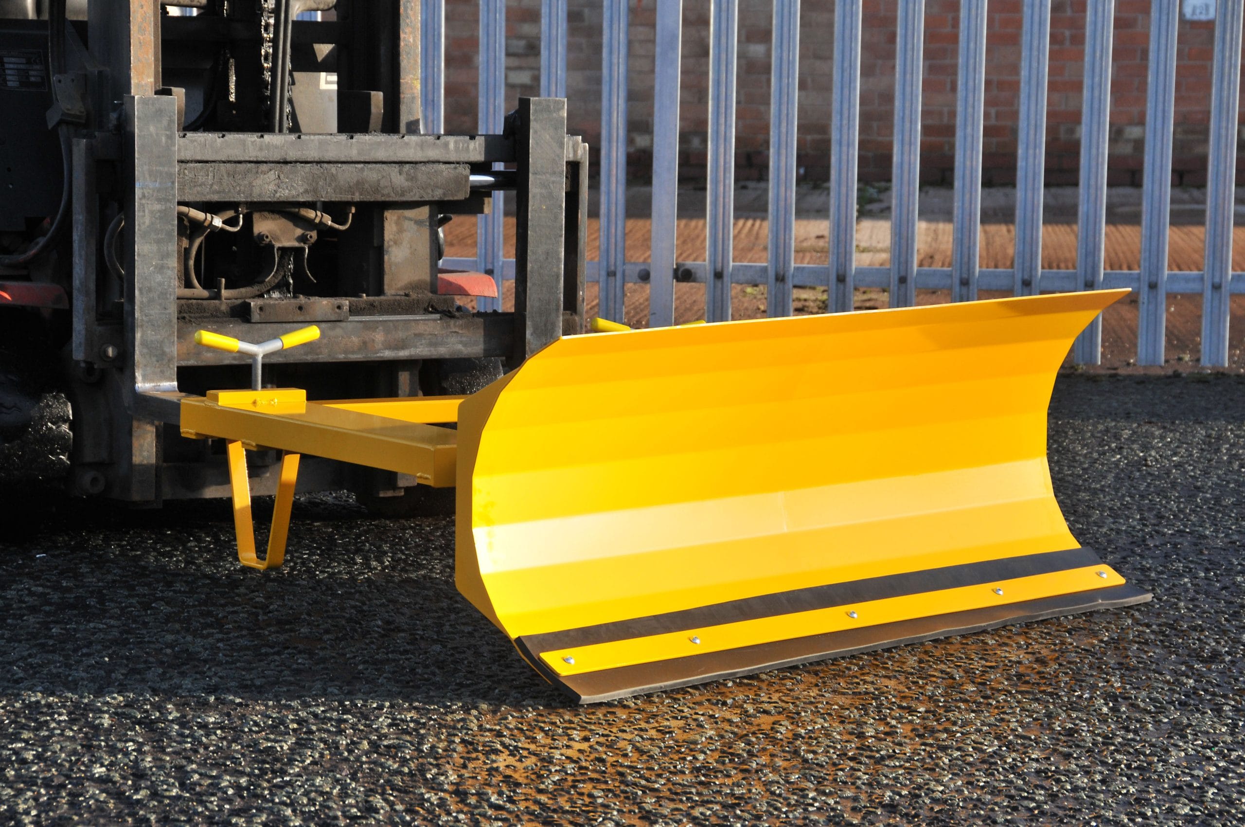 Heavy duty snow plough and yard scraper attachment to fit most fork lift trucks. Fixed left hand sweep angle of 15 degrees. Heavy duty concave blade with bolt on 12mm thick reversible rubber wear strip. When not used for snow clearing can be utilised as general purpose yard scraper. Choice of 1200, 1500 or 2000mm blade widths. Plough fits over forks and is secured with zinc plated ‘T’ bar screws. Finish: Yellow epoxy coated.