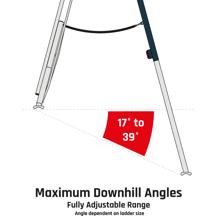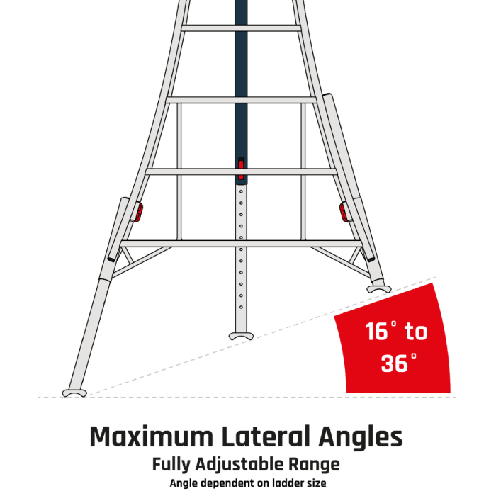 Maximum standing height: 3ft / 0.9m below the ladder’s height