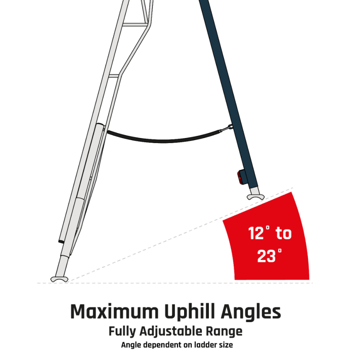 - 3 adjustable legs adjust independently up to 18 inches (45cm) to accommodate for uneven surfaces, slopes, hills and steps