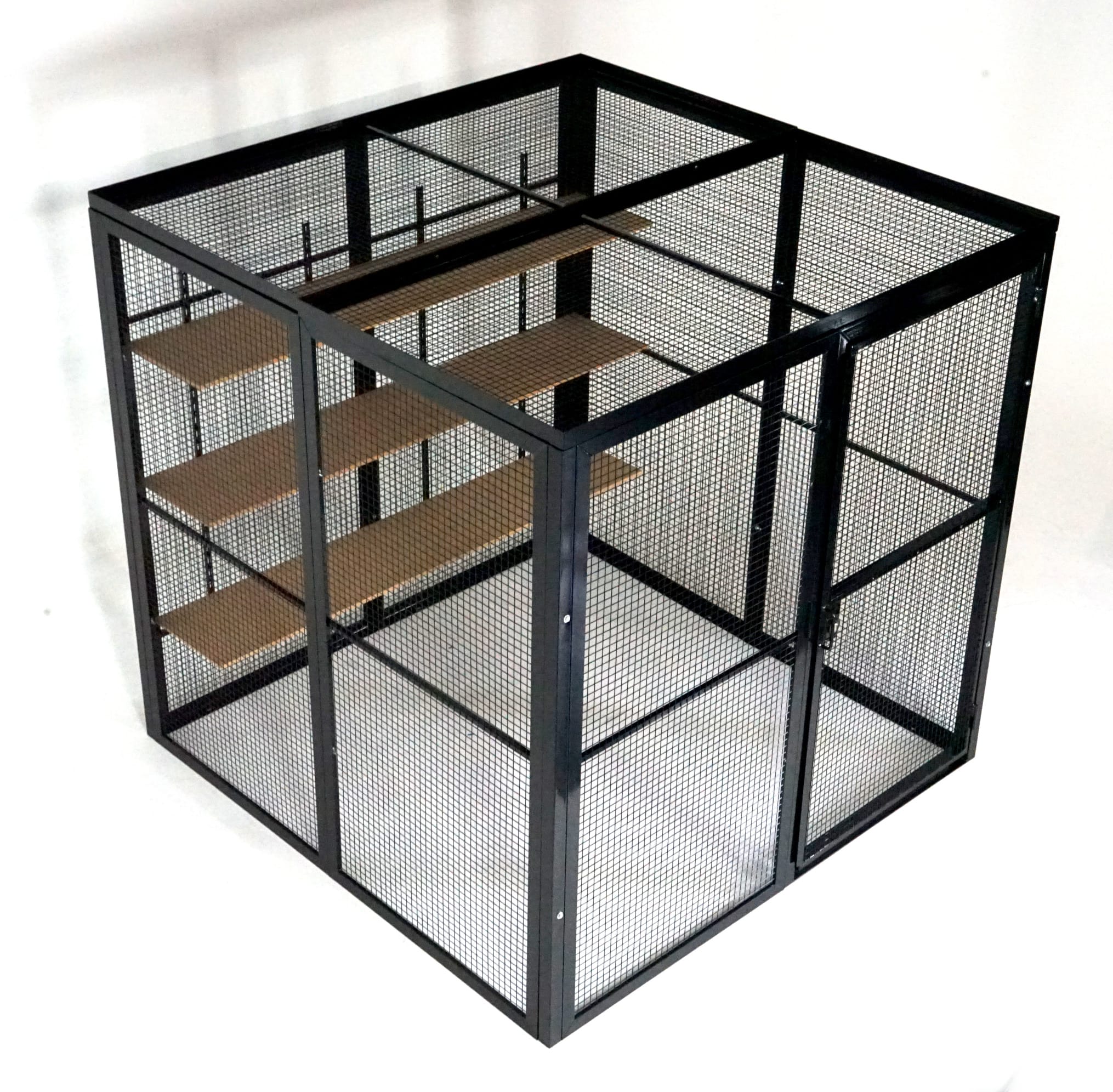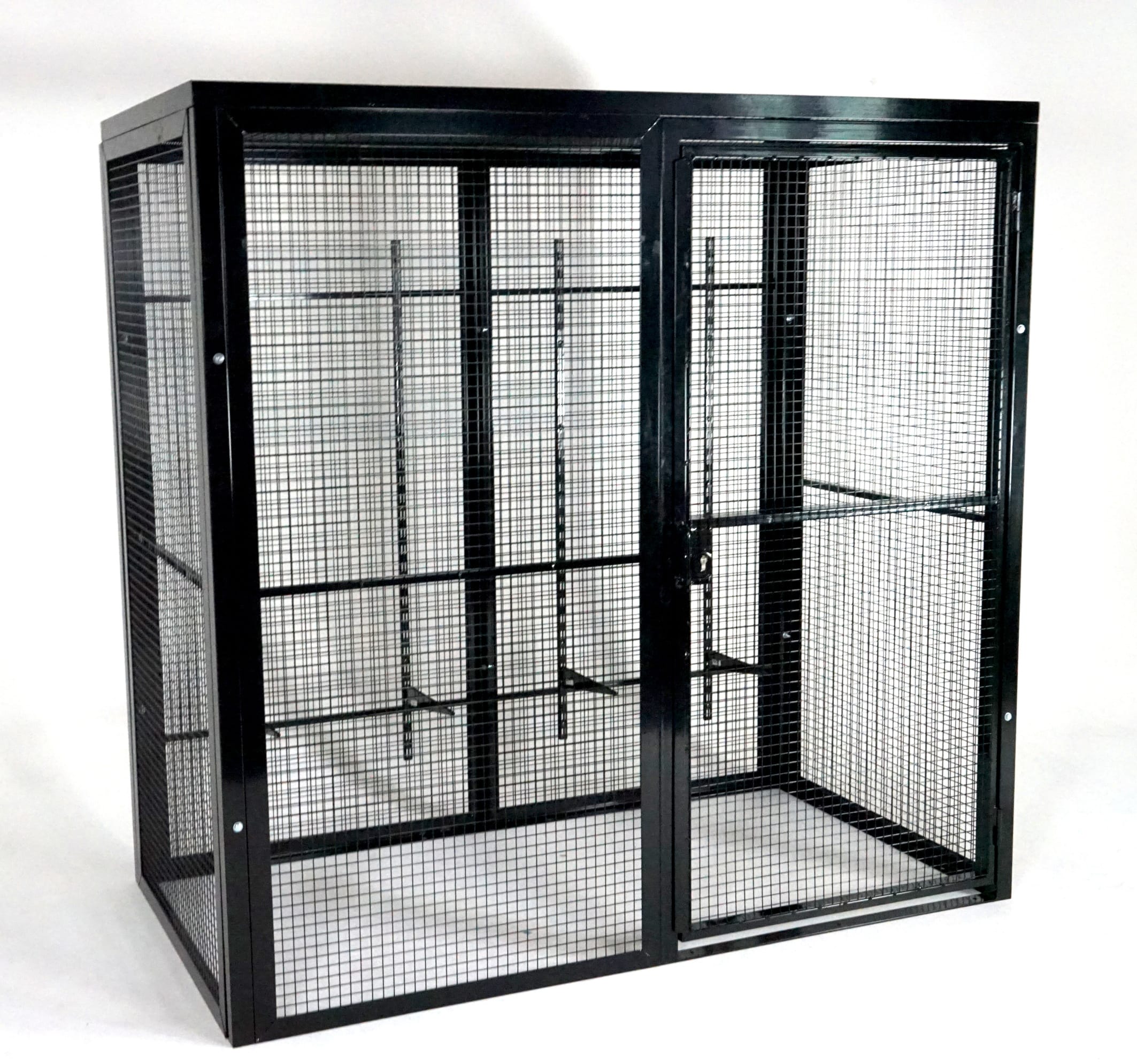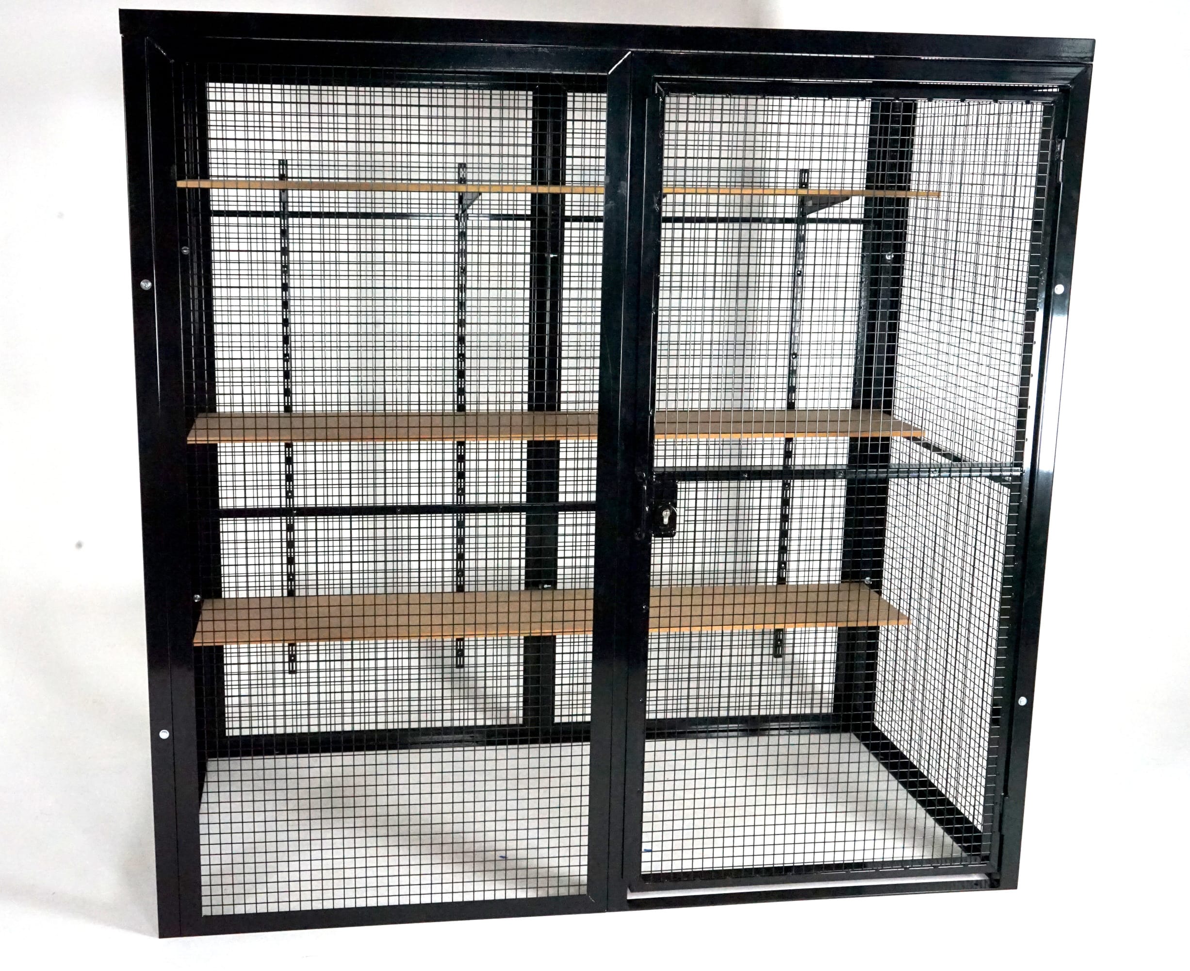All cage panels are Steel Angle Section with inset square mesh for high visibility and floor fixing points for additional security.