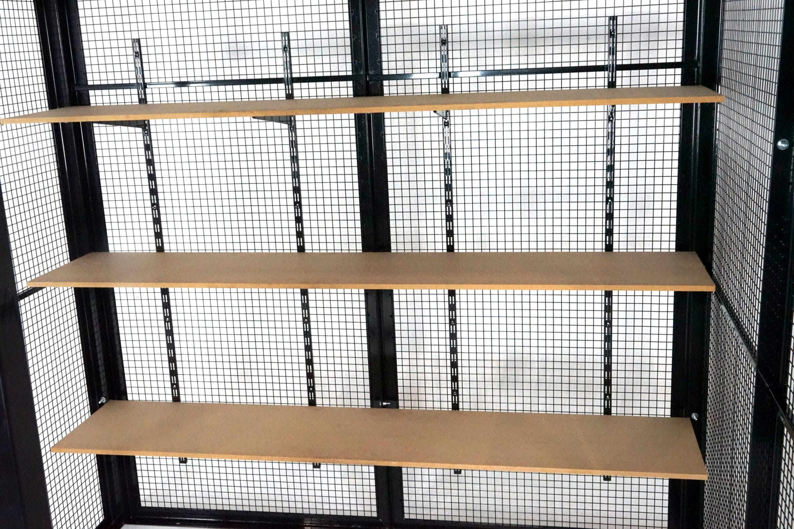 Knox High Security Cages are attractively finished in black powder paint as standard. All units are delivered flat pack for easy on-site assembly with all instructions and internal fastenings excluding floor fixings.