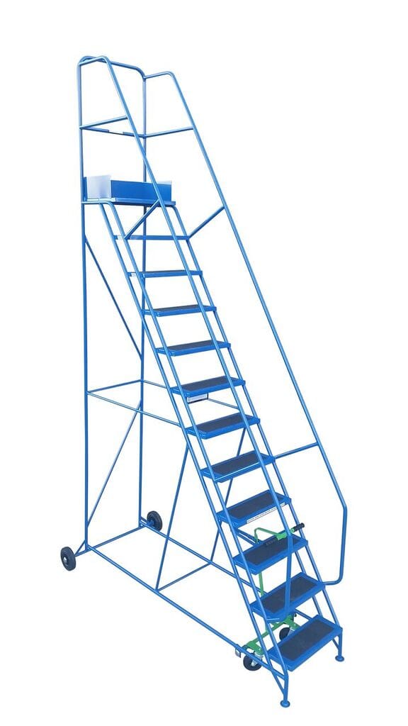 The Industrial warehouse Ladders are fully welded using sturdy 25mm steel tube and plate and are finished in a highly durable powder coat making these steps both robust and attractive. A Pacific blue finish is standard with other colours available through the options menu.
