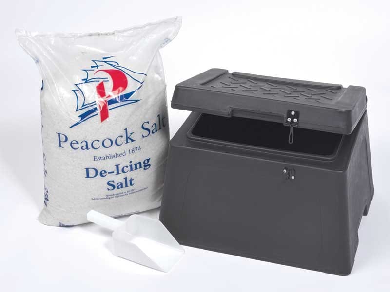 Supplied complete with 25kgs of rock salt and small injection moulded scoop (both supplied loose in the bin – weight loaded is 30 kgs).