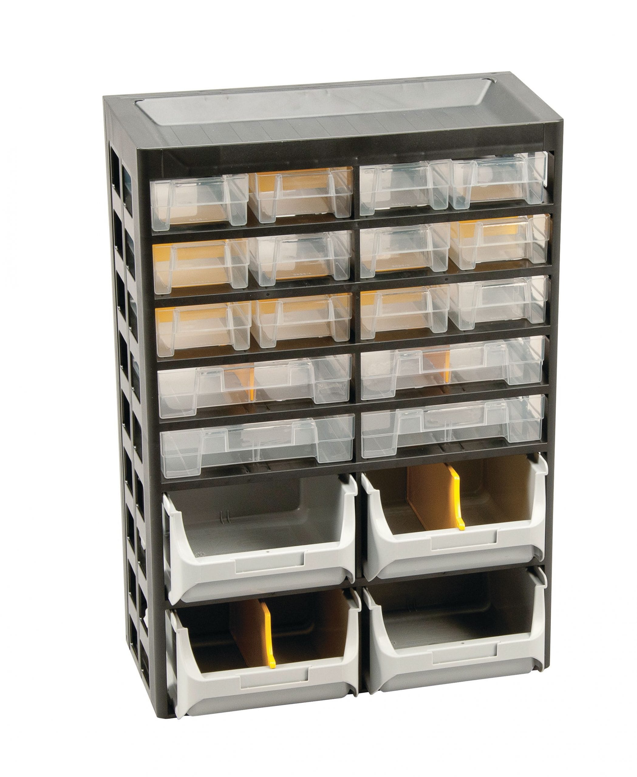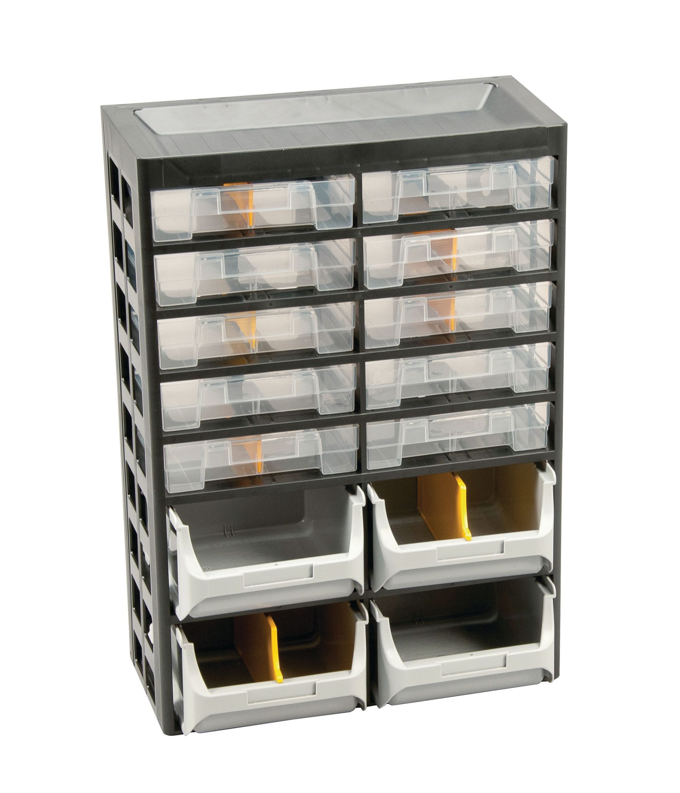 - Designed to be stackable, wall mountable or bench top mounted, ideal for the storage of small components or fixings