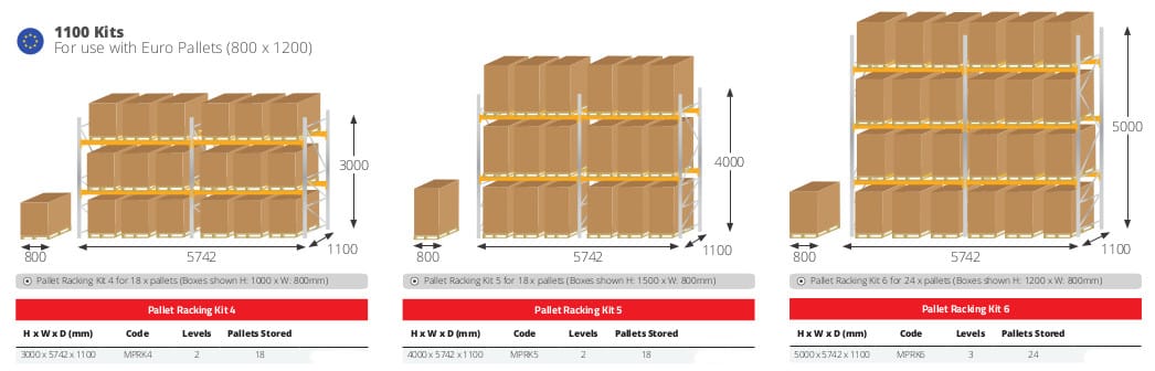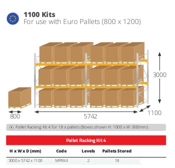 1100mm Deep Kits are for use with Euro Pallets (800 x 1200mm)