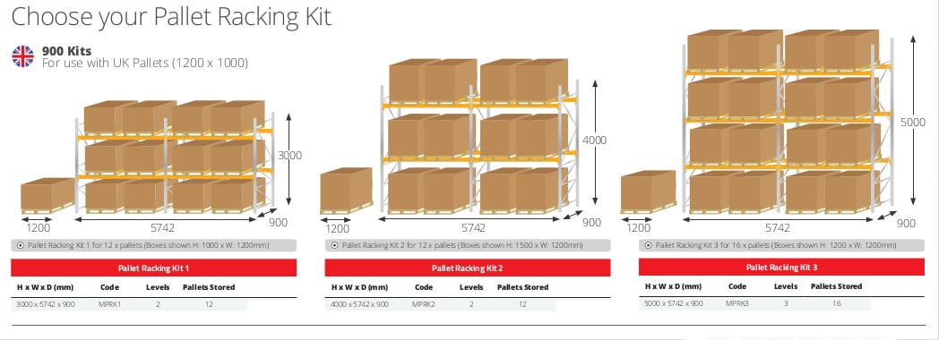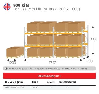 900mm Deep Kits are for use with UK Pallets (1200 x 1000mm)