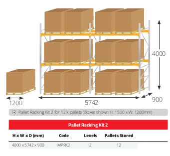 Easy Order Pallet Racking Kits, each kit comprises of a Starter Rack and an Extension Rack. Choice of either 900mm or 1100mm depths.