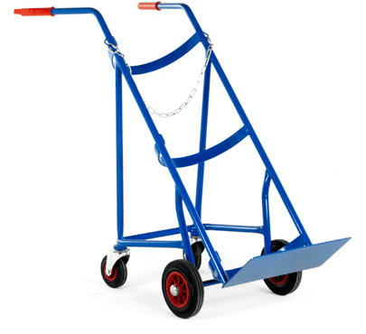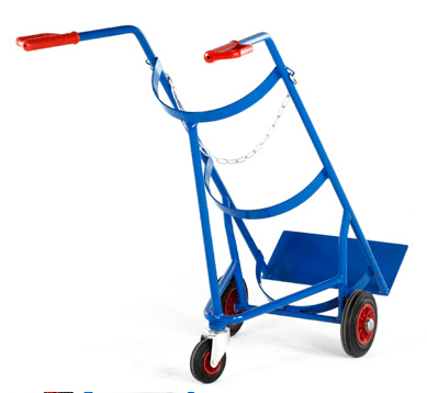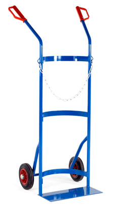 Designed for cylinders diameter x height: 380 x 1250mm. Twin rear handles fitted with protective hand grips. Solid foot plate and vertical side tubes with cylinder retention chain.