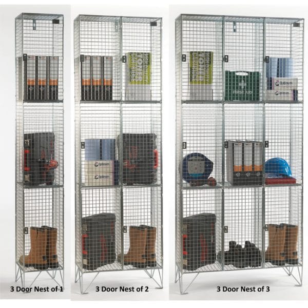 - Overall height includes 150mm legs; raising the mesh locker off the floor