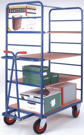 Wheels: 2 fixed and 2 swivel castors with 200mm diameter rubber tyred wheels and roller bearings.