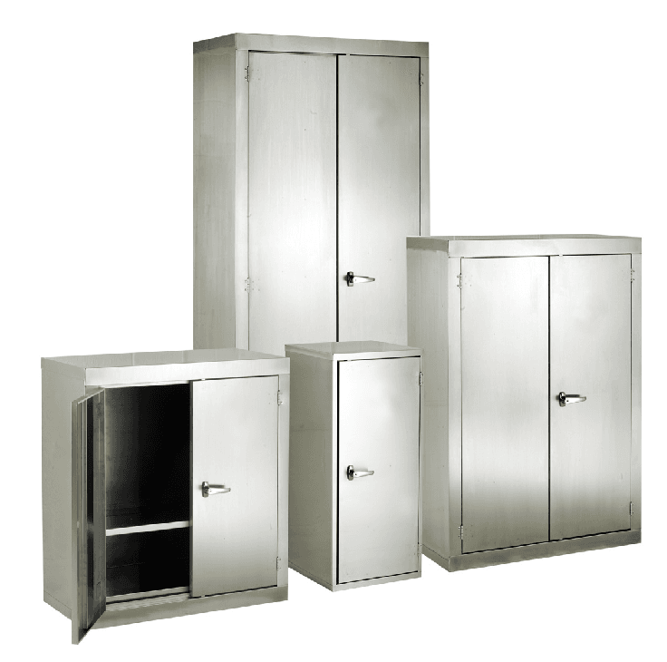 A range of stainless steel cabinets manufactured from 304 grade stainless. Ideal for clean and hygienic work environments. Stainless Steel CB Cupboards are supplied complete with adjustable shelves, leverlock handle with 2 rods locking top and bottom and 2 keys.