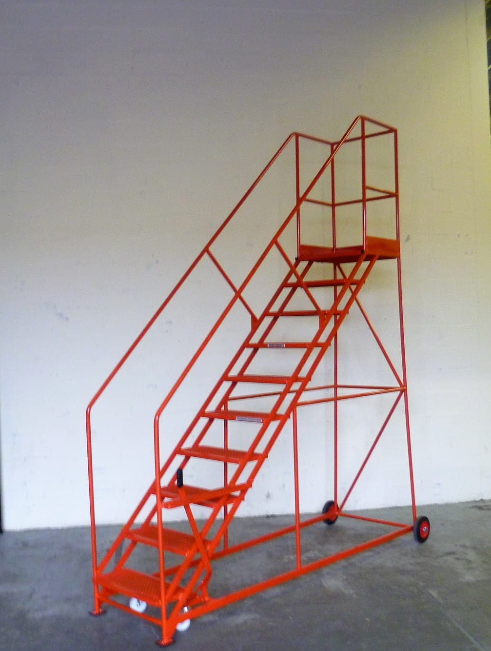 The TekA Step Easy Slope mobile safety steps have a gently sloped (45 degree) step angle. Constructed using welded 25mm steel tube and plate and finished in a highly durable powder coat making these steps both robust and attractive. These mobile safety steps have a safe working load capacity of 300 Kg. A choice of 2 colours are available.