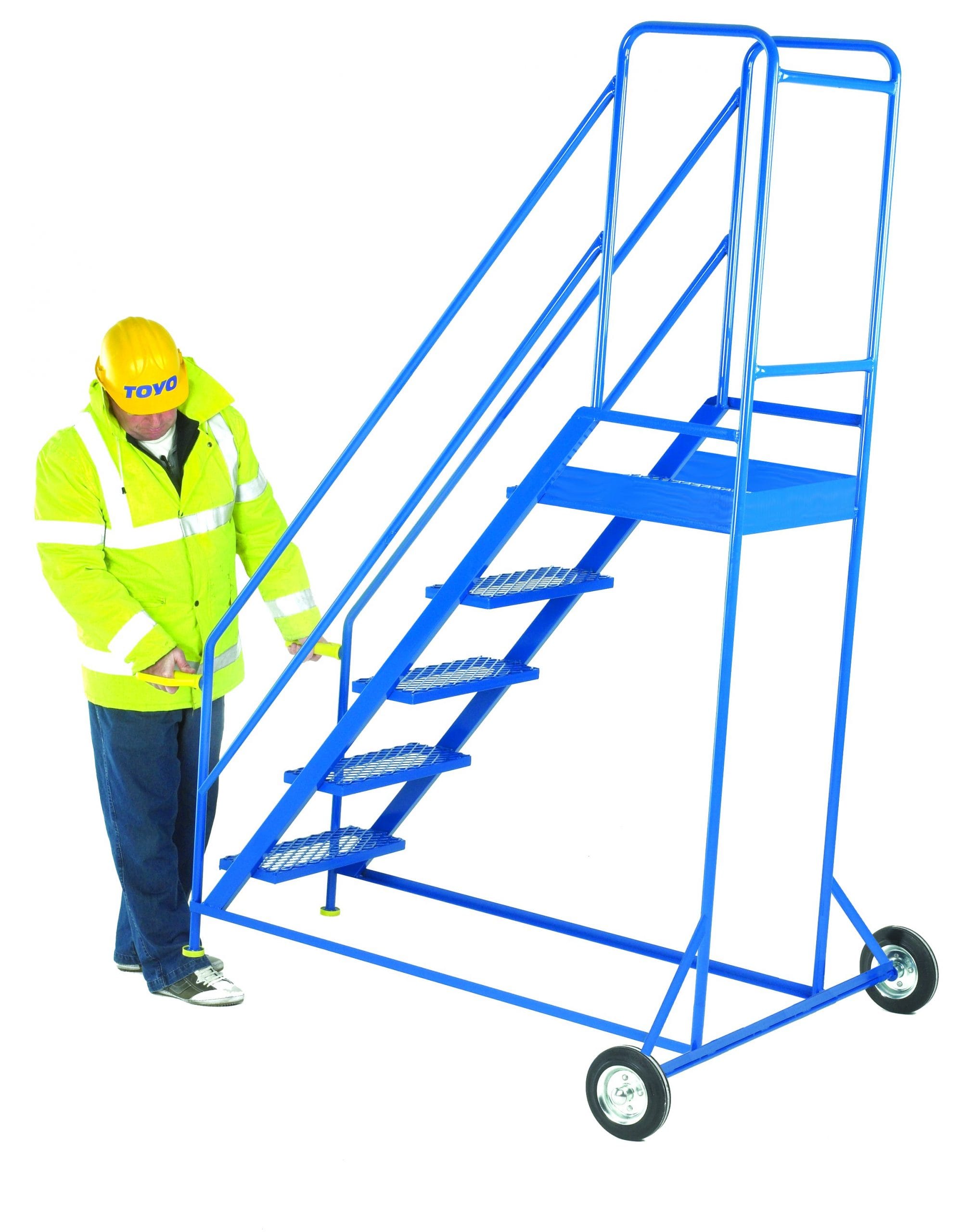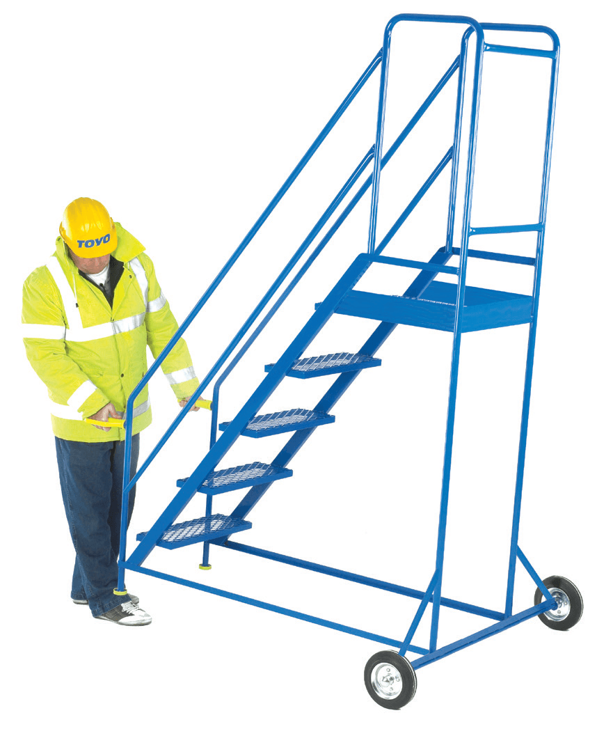 Welded steel tube and bar construction. Expamet treads and large working top platform makes them ideal for loading and unloading items outside. The steps have 2 handles at the front fitted with knuckle guard hand grips
