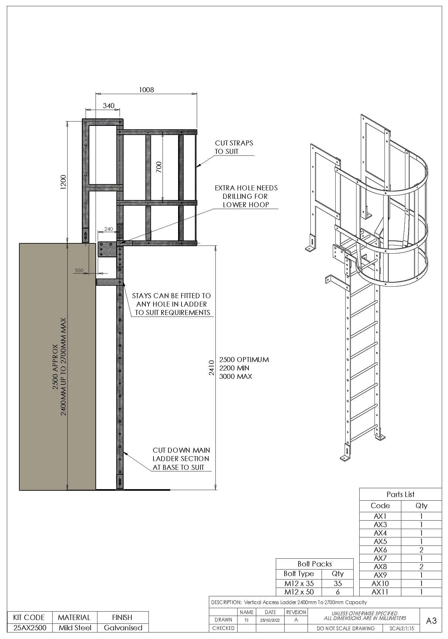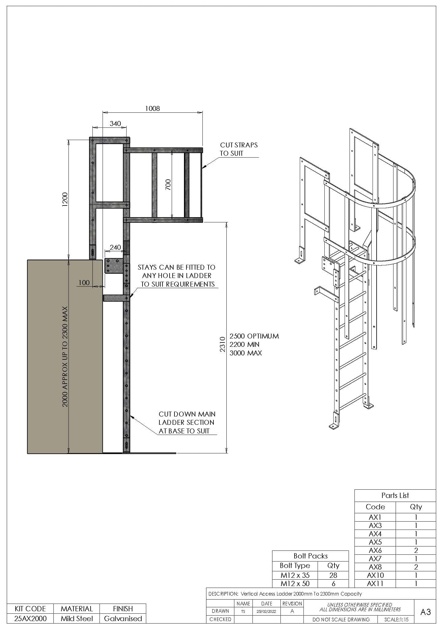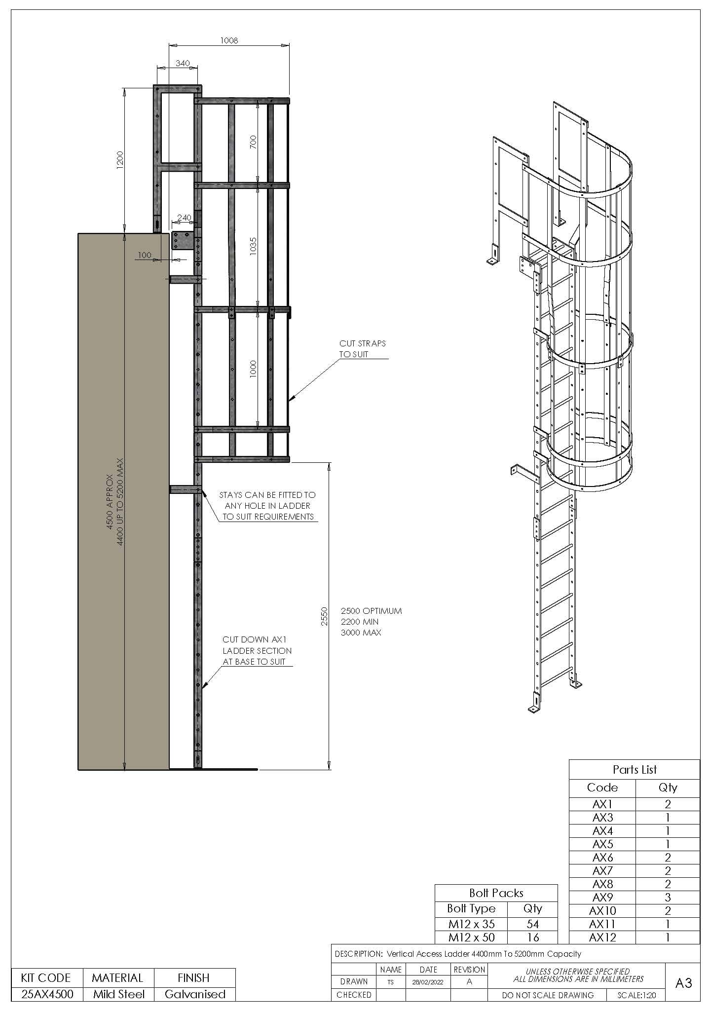 Designed specifically for use where safe, vertical access is required, Vertical Access Ladder Kit is a safe, simple modular design with individual parts that bolt together to forma a complete ladder that offers a safe solution to almost any access problems.
