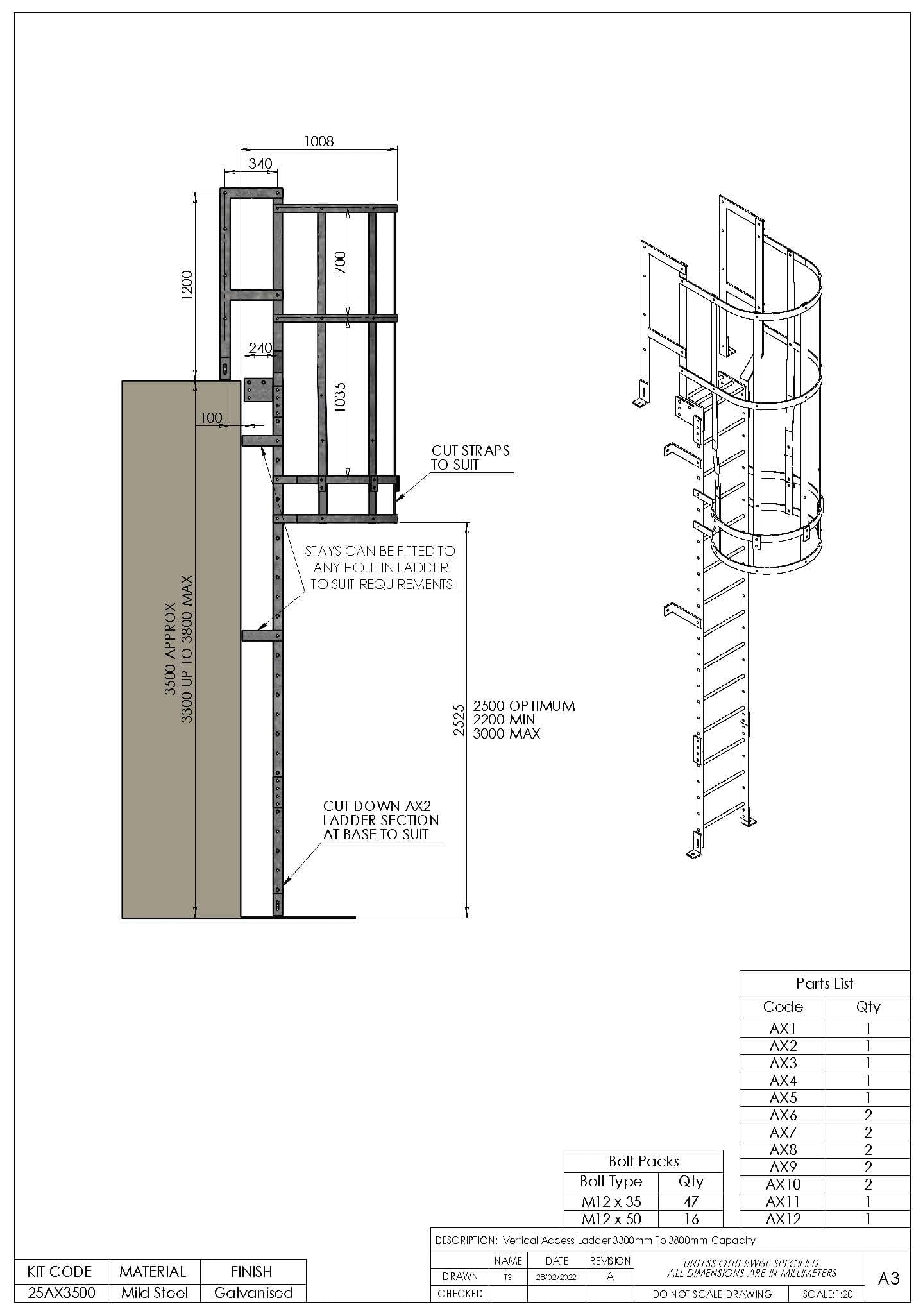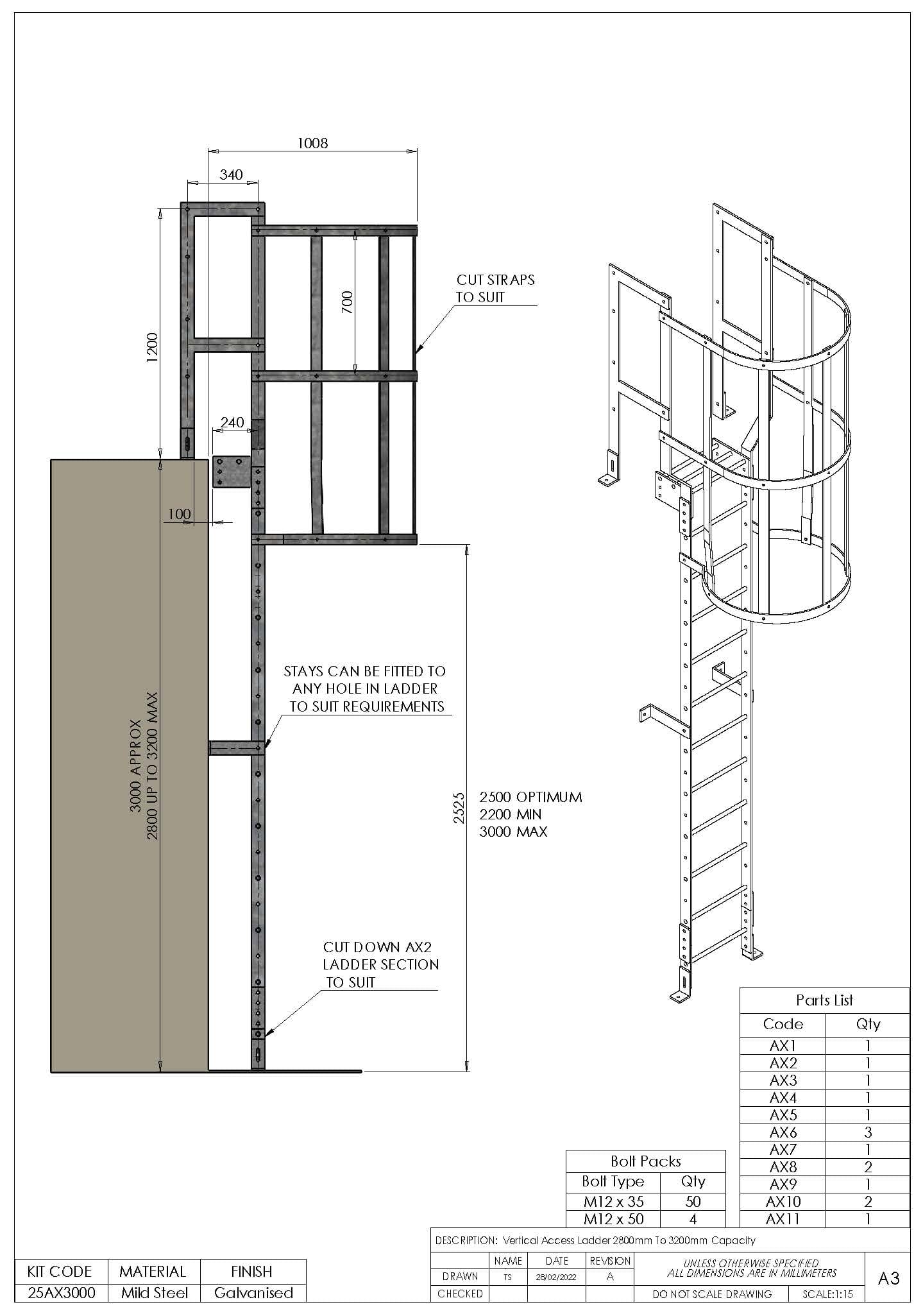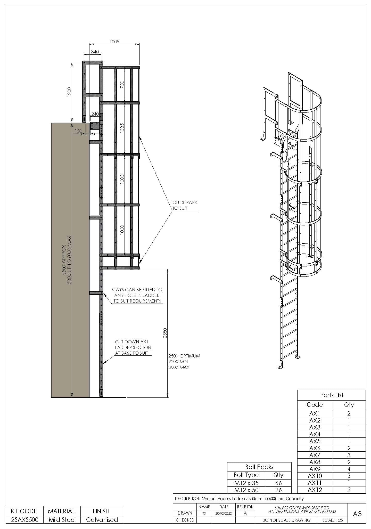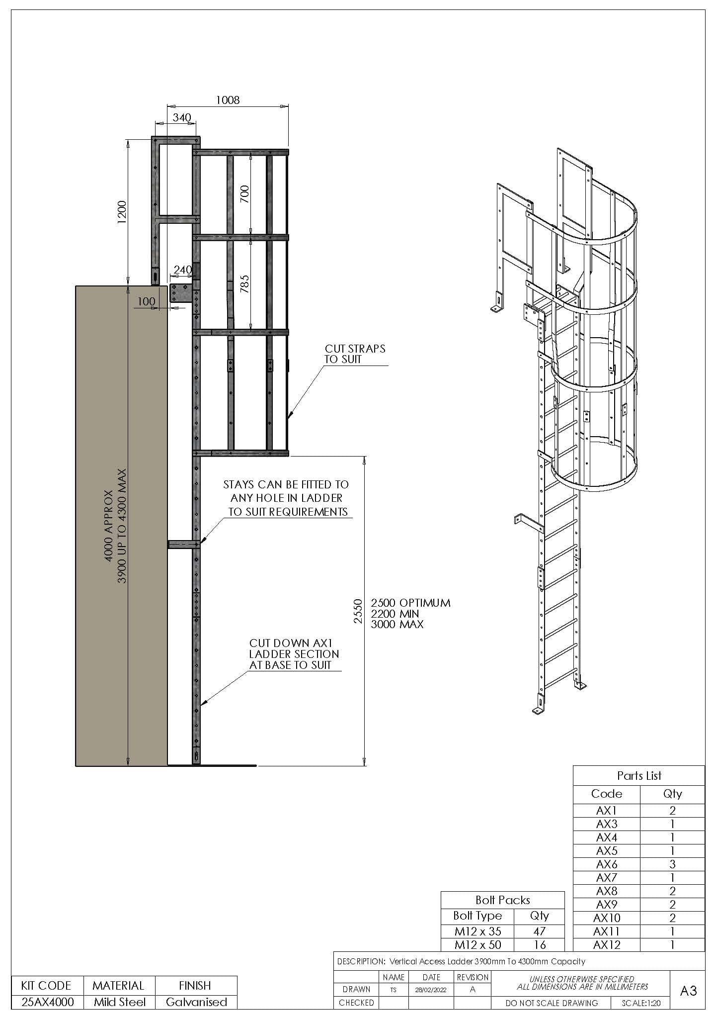 Designed specifically for use where safe, vertical access is required, Vertical Access Ladder Kit is a safe, simple modular design with individual parts that bolt together to forma a complete ladder that offers a safe solution to almost any access problems.