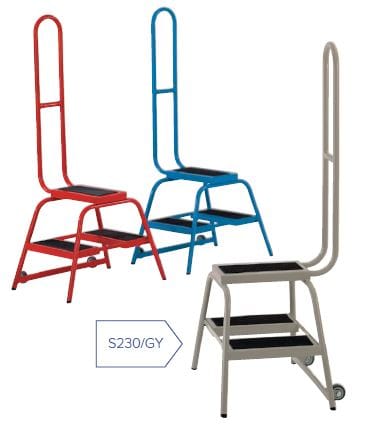 Stable to use and easy to move. Ideal moveable access steps for industry, offices, libraries and hospitals etc. Finished in a choice of four powder coated colours.